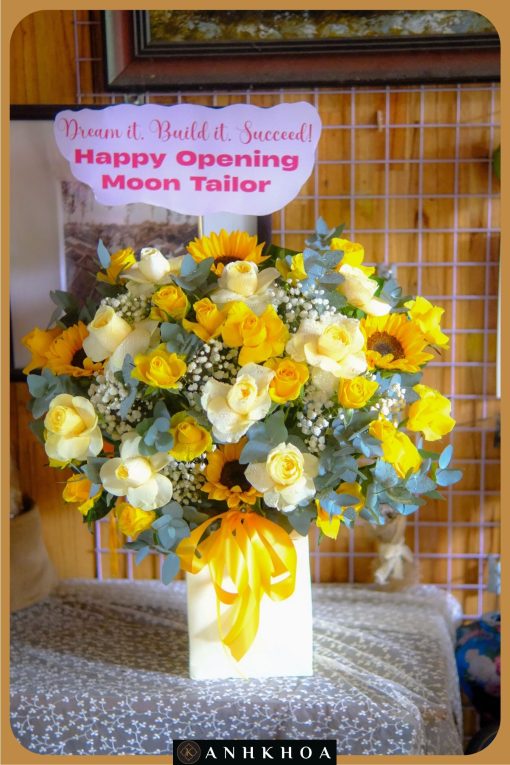Mô tả sản phẩmSản phẩm Giỏ Hoa Tươi Khai Trương Hội An được thiết kế với giỏ hoa tông vàng rực rỡ, thích hợp tặnng các dịp sinh nhật, tặng Mẹ, tặng Cha, tặng bạn gái, ngày Quốc tế phụ nữ, valentine, …